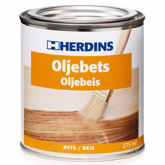 Herdins Oljebets är en färdig betslösning som består av pigmenterad olja. Oljebetsen är inte lika transparent som Äkta bets eller Lackbets, men ger istället en jämnare infärgning. Oljebetsen ger ett bra grundskydd samtidigt som träytan får en mjuk och taktil träkänsla. En oljebetsad yta är dessutom lätt att reparera. Det räcker med att du slipar bort de skadade området och applicerar på ny Oljebets. Den har också längre öppettid än de lackbaserade betserna, vilket gör att den lämpar sig bättre till större ytor. Som till exempel golv.