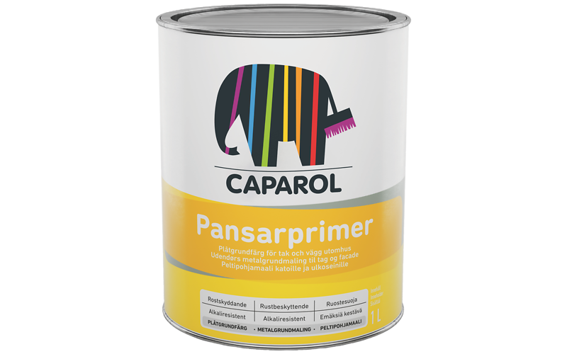 Caparol Pansarprimer V är en vattenspädbar rostskyddsgrundfärg för detaljer och tak av plåt med tillsats av zinkfosfat som rosthämmande medel. Lämplig på väl rengjorda rostskador på tak- och fasadplår före övermålning med Pansartäck.